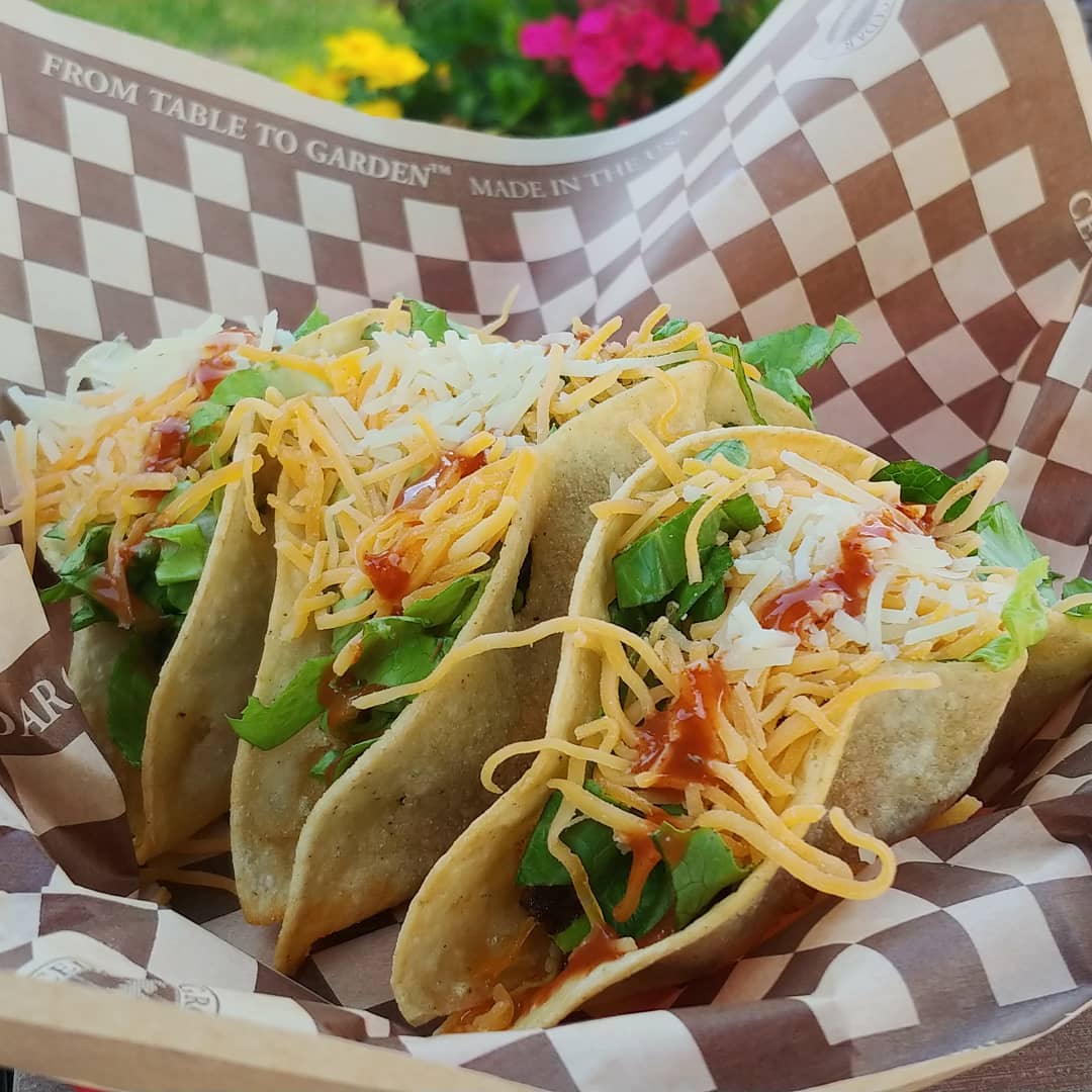 Crunchy – Hand formed fried tortilla shell filled with crispy battered halibut, onion, tomato, pico-pica, shredded lettuce, cheese blend, jalapeno and BOOM! sauce.