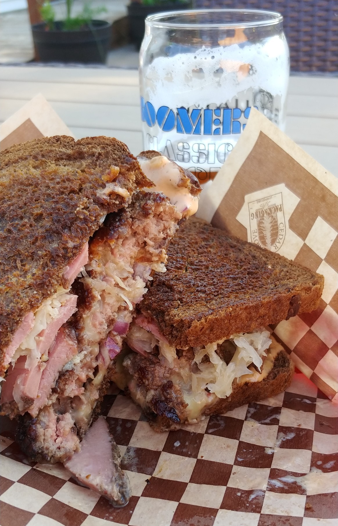 This little lady comes served up on toasted marble rye, grilled onions, served with a side of sliced deli style pickles, and you pick your cheese.