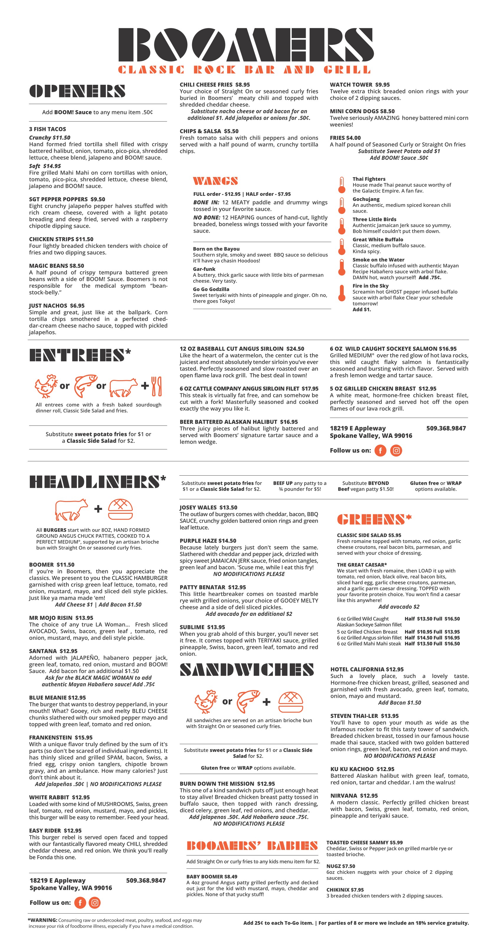 Menu We like our food like we like our classic rock. An eclectic mix, sometimes with a twist. Trouble Viewing? Download